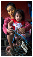 Harvested by two seaweed farming communities near the towns of Kota Belud and Semporna in Sabah, Malaysia, the communities are a mix of Bajau, Tausug, and Sulug ethnic groups of people who mostly live in stilt houses by the seashore and even far out at sea. Traditionally they are fishermen and families would earn less than SG$300 a month. In seaweed farming communities, women are also active participants and earn money by seeding the cultivation ropes and drying the harvests.